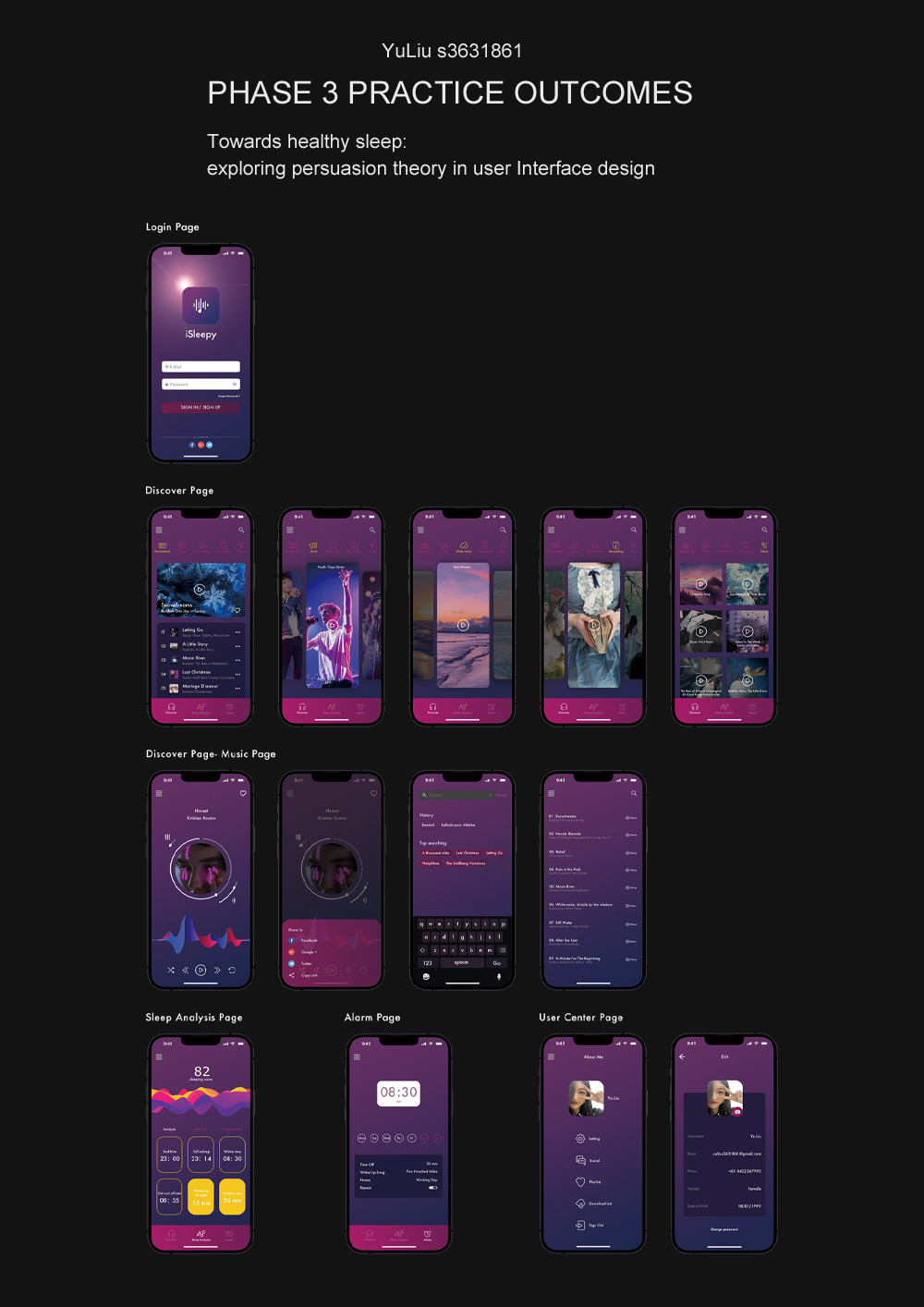 The development of the Internet and technology has changed people's work and life, and people's work efficiency has been improved, while sleep disturbance has become increasingly prominent. Affected by electronic products, young people are in the state of poor sleep quality and sleep delay, and the age of sleep disturbance group is gradually younger. In this regard, designing sleep management APP to guide and intervene people with sleep problems and help them get better sleep is a work of both significance and market application prospect.