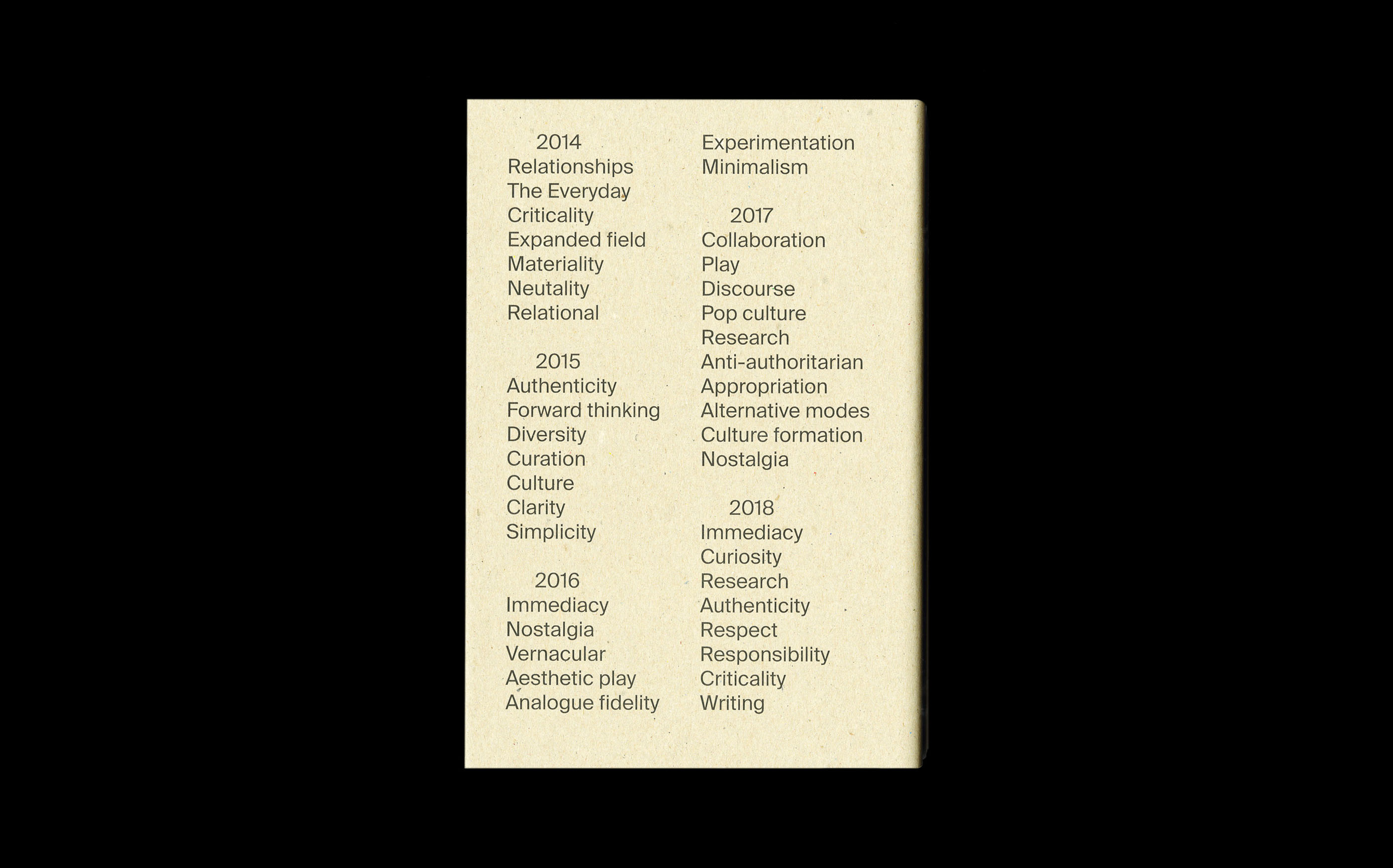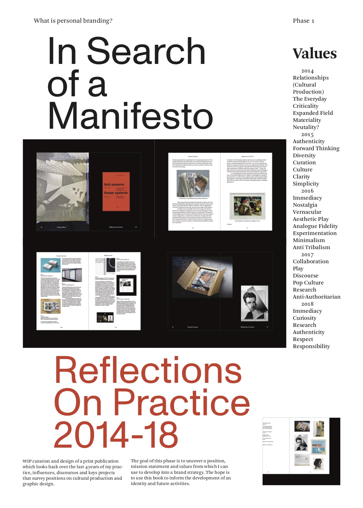 The research outcomes culminated in three studio artefacts: the publications, ‘In Search of A Manifesto: Reflections of Practice 2014–2018’, ‘Practice As’; and lastly, an online platform archive, ‘1-L-P’. Spurred by these artefacts, reflexive writing, maintaining open conditions, engaging with a community of practice, and building agency have emerged as new ways to approach design with a conceptual and holistic understanding. In what follows is the story of my research project.