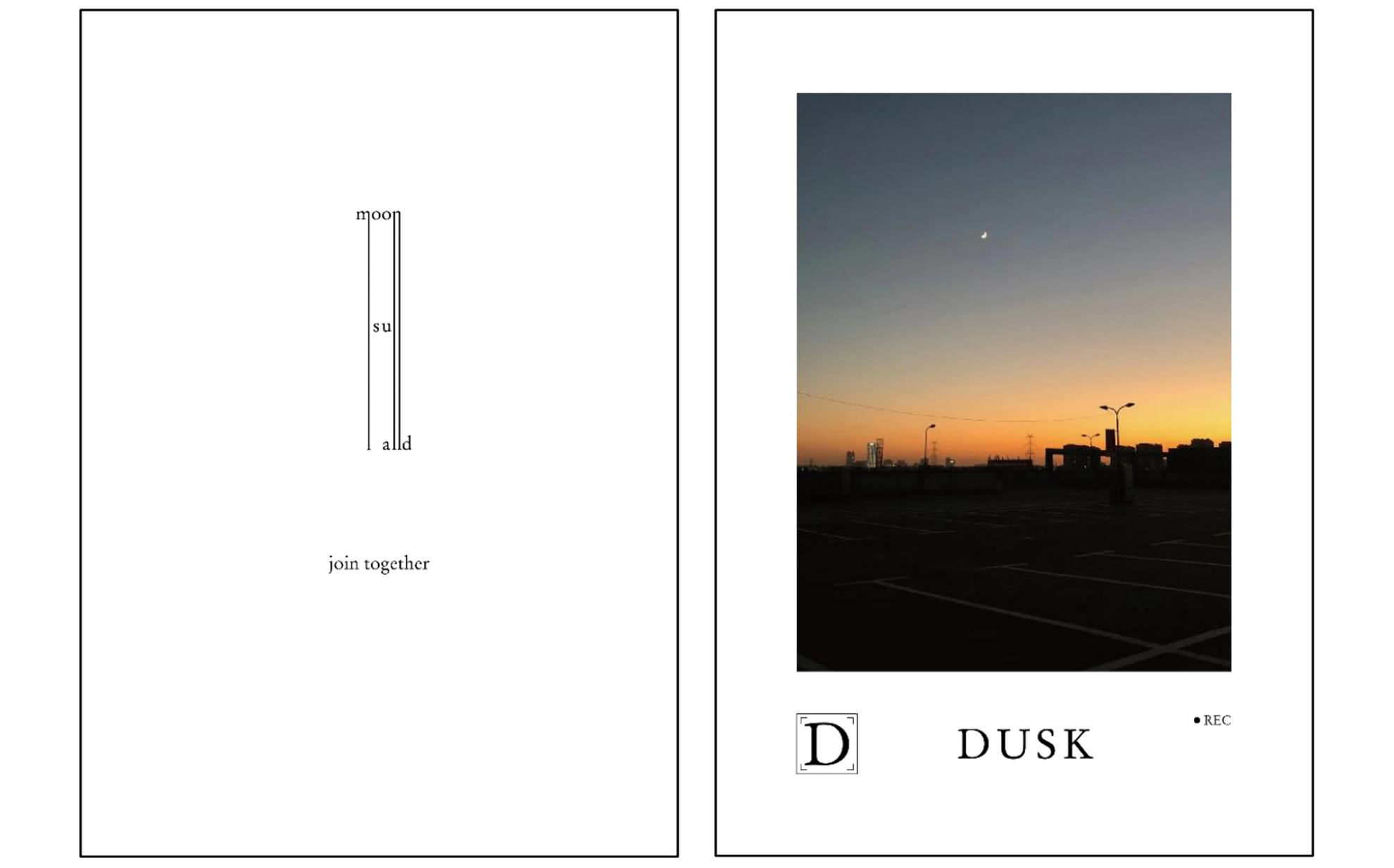 Inspired by documentary photography, I observed and recorded life in detail for a month in this project. Every time I feel emotional fluctuations, I freeze the picture by taking photos with mobile phone and record the moments that make me feel happy at any time. At the end of each day, I describe the photo with a short text to help me recall the feelings and memories of that moment. After finishing the observation phase, all the images were collected and organized, edited into a loose-leaf book, and attempts were made to map the emotional experience each image displayed by building a typography. It was a challenging process, and typography went through three iterations of updating in total, finally presenting with poetic and ambiguous visual effects. The other two experiments were hand-painted collage and creative fonts.