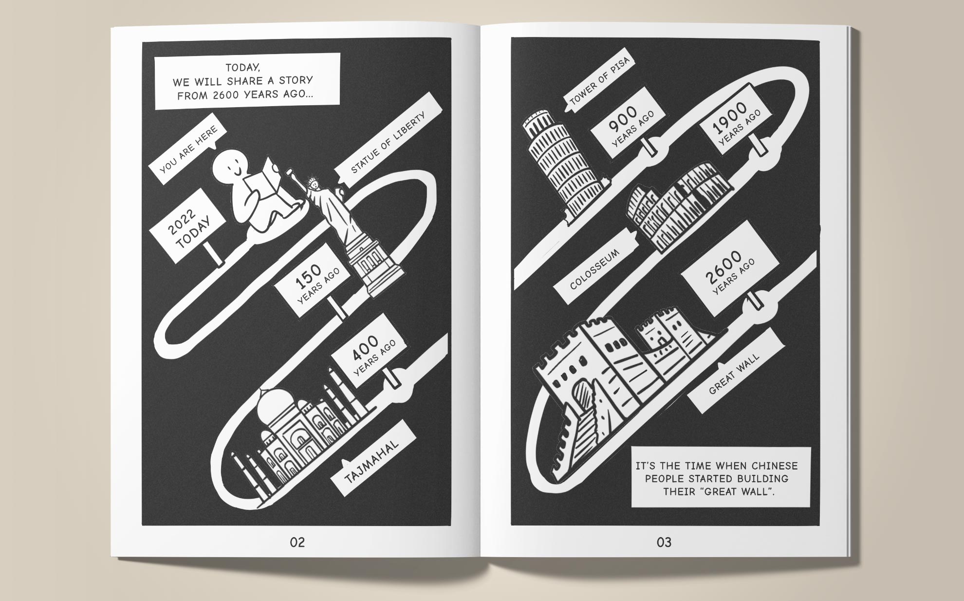 This research proved that comics could assist children's history education. Concrete visual language could explain the historical time concept with the panels' combination. The historical character design could refer to children's physical features and be exaggerated to engage young readers. Meanwhile, The comic's story could centralise on historical characters and could combine historical objects in storytelling with helping students remember the knowledge. A historical comic could be generated by 7 steps. These insights could be tested and critiqued by making more comics for more complicated topics (such as politics, people and cultures), for different readers' groups and for different languages in my future practices.